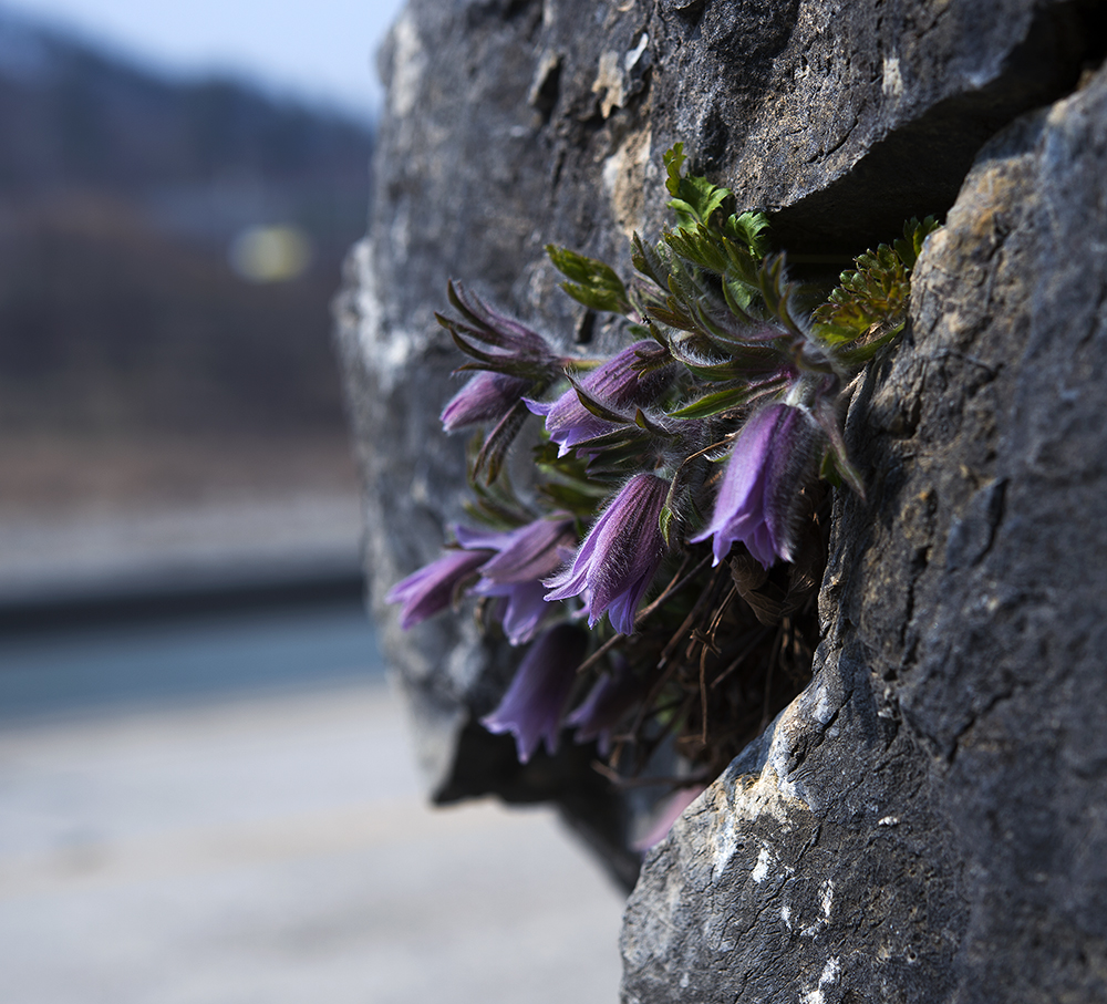 동강할미꽃은 석회암 바위틈에서 자생하는 석회암지지 식물로